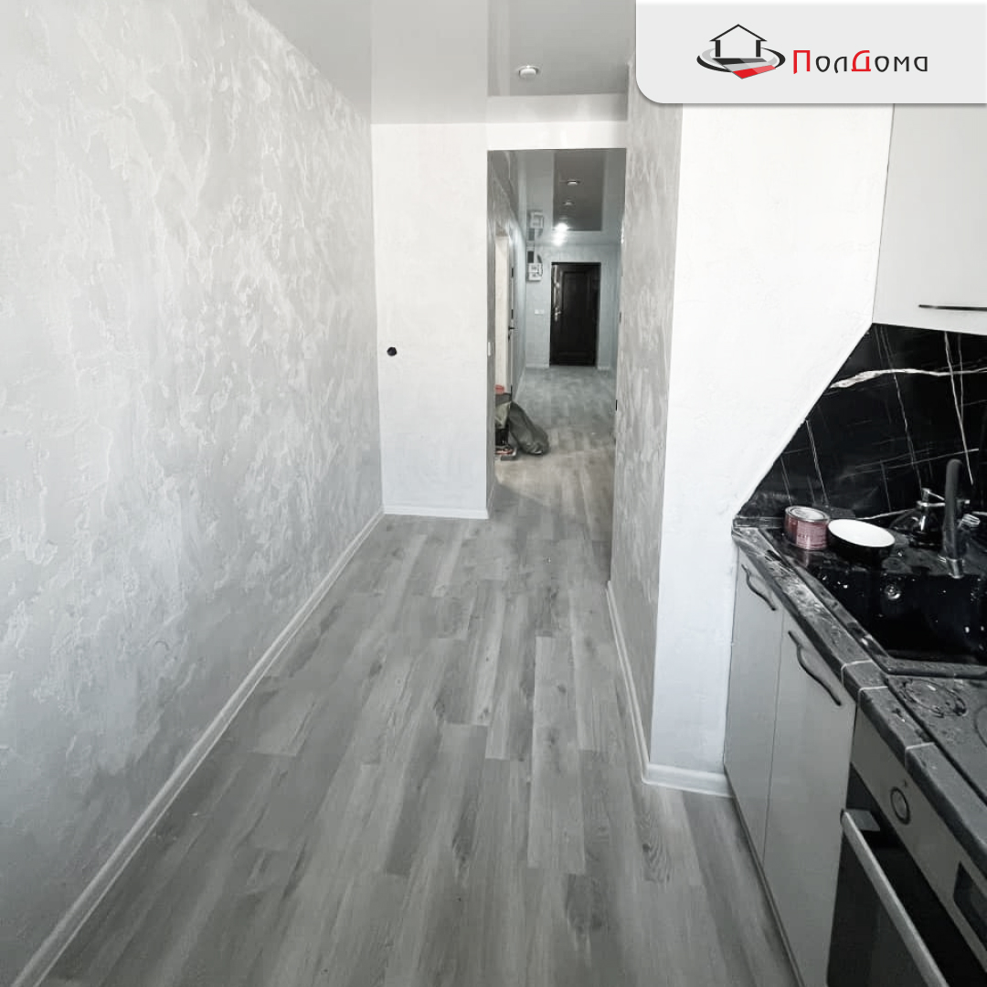Для квартиры с разными типами помещений — кухня, гостиная, спальня — важно подобрать материал, устойчивый к влаге и перепадам температуры, но при этом уютный и приятный на ощупь. Поэтому выбор пал на SPC-плитку — современное каменно-полимерное покрытие, которое объединяет в себе эстетику дерева и прочность камня. Декор «Дуб Берген» создаёт мягкую, спокойную атмосферу, визуально делает интерьер теплее и вписывается в любую обстановку.